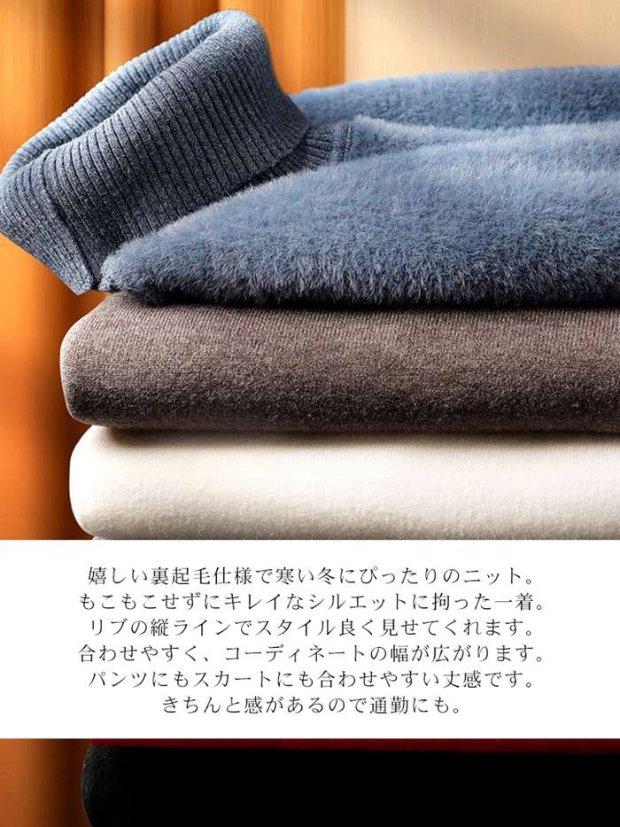 タートルネック シャギーニット レディース 厚手 裏起毛 クルーネック ニットセーター 裏ファー インナー 保温 防寒 蓄熱 ニットトップス 長袖 暖かい オフィス カジュアル きれいめ 春秋冬 20代 30代 暖か
